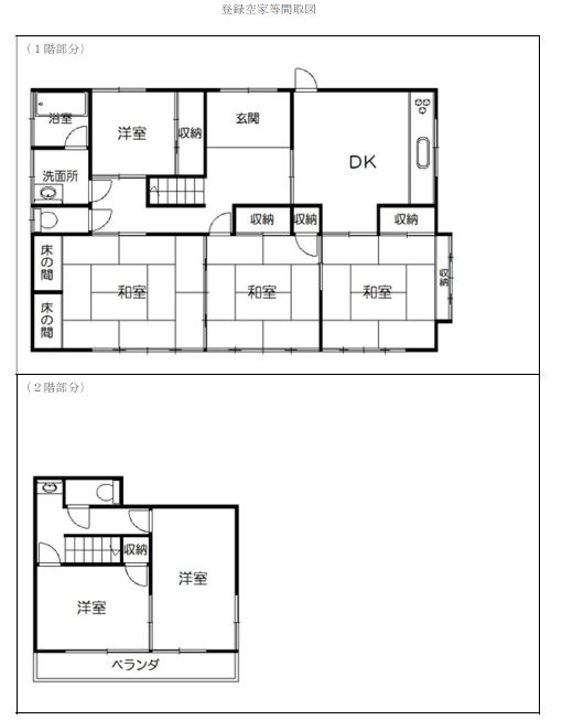 詳細間取り | 1階:和室(8畳×2、10畳×1)・洋室(4.5畳×1)・台所・風呂・トイレ、2階:(5畳×1、6畳×1)・トイレ