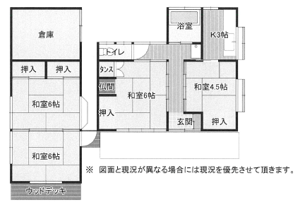| 詳細間取り | 1階:和室(4.5畳・6畳)・キッチン・風呂・トイレ・離れ