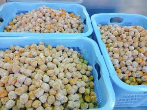 れんこんの皮をむいています。本日のれんこん40kg!日本一の産地である茨城県の霞ヶ浦産です。