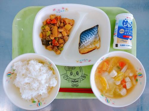 明治22年にはじまった給食の再現で、焼き魚と梅干しです。栄養が足りないので、牛乳とみそ汁をつけました。戦争で中断された給食も、アメリカやユニセフからの救援物資のおかげで給食は再開されました。子どもたちの栄養状態は良くなり、体格も良くなっていきました。本日で「学校給食週間」は終わりです。たくさんの人のおかげで給食がつくられ、不自由なくいただけることに感謝の気持ちを忘れずにいたいですね。
