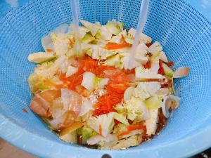(右)煮出した後の野菜くず(左)野菜からとっただし
