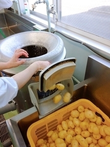 じゃがいもを入れると皮をむいてくれる機械(芽は包丁で取ります)