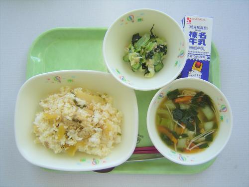 秋間梅林では梅の出荷が忙しい中ですが、梅ジャムを給食センターに届けていただきました。梅ジャムを使ったソースをつくり、唐揚げにかけました。「梅はちょっとにがてだけど、今日のソースはいける!」子どもたちもも舌つづみを打っていました。ねぎは小日向の宇佐美さん作です。本日はお米も安中産。鶏肉、しらたき、キャベツ、小松菜、大根は群馬県産。給食は地産率が高いのです(^^)