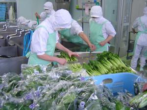 とうもろこしは、給食センターで4分の1にカットして、蒸しました。