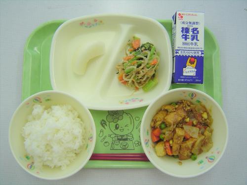 丈夫な骨を作るためには、食事からカルシウムをとること、運動で骨に刺激を与えること、カルシウムを取り込むためのビタミンDが、体内に十分あることが必要です。ビタミンDは、太陽光を浴びることで作られます。実は、本日の麻婆豆腐の豆腐には、カルシウムが多く含まれています。給食を食べて、カルシウムをとり、外で元気に遊んで、丈夫な骨を作ってください。