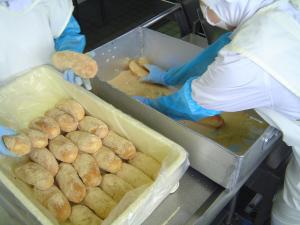 本日は西横野小学校のPTAの方々が、給食センターの試食会に来てくれました。きなこあげパン作りは大きなフライヤーで揚げていくため、迫力があったと思います。