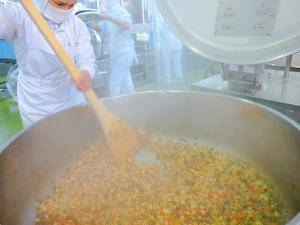松井田学校給食センターでは、今月から安中小学校の給食も作り届けています。期間は安中小学校の給食室を建て替えている約1年間です。食数が2倍になったり、学校までの距離があり仕上がり時間も早くしなければなりませんが、安中小学校からきた調理員さんと一緒に力を合わせてがんばっています。安中小学校からもどってくる給食の残りはとても少なく、おいしく食べていると聞きひとまず安心しています。