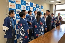 安中総合学園高校のダンス部と弓道部女子の皆さんが、県高校総体優勝の報告に岩井市長を訪問しました。誠におめでとうございます。報告会では今後の大会に向けて、部員の皆さん一人ひとりに抱負を述べていただきました。話の内容もしっかりしていて表情もすごく豊かで、さすがに人格識見も備わっていると感じました。ぜひ悔いを残さないよう、持てる力を存分に発揮して頂きたいと存じます。