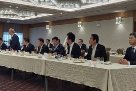 都内で群馬県選出国会議員と県内全市長が参加し、「県選出国会議員と県市長会との朝食会」を行い、各市の要望事項を国会議員の方々に説明しました。市長会共通要望の他、安中市として10項目を要望しました。