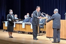岩井市長は安中市区長会総会に出席し、退任された区長・区長代理者の方々に感謝状を贈呈されました。長年にわたり市政発展にご尽力頂き、心から感謝します。総会終了後、区長さん方に市役所新庁舎建設の説明会を行わせて頂きました。貴重なご意見も頂き、出来る限り今後の設計や建設に活かしていきたいと存じます。