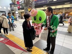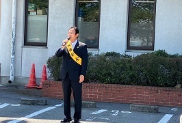 岩井市長が、交通関係団体の皆様とともに春の全国交通安全運動街頭指導を安中警察署前で行いました。市民の皆様には交通ルールの遵守と、安全行動を心がけていただきますようお願いいたします。