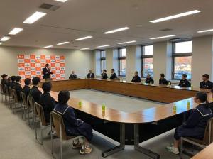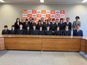 安中総合学園高校生徒会が市役所を訪れ、「能登半島地震義援金」を岩井市長に渡しました。全日制と定時制における600名以上の生徒が快く寄附して頂いたとのこと。ずっしりと重い義援金箱を預かりました。日赤を通じて被災地にお届けしたいと存じます。誠にありがとうございました。