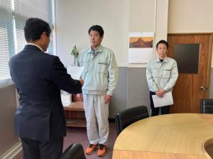 石川県かほく市災害派遣職員出発式を安中市役所で行い、危機管理課の多胡課長補佐とスポーツ課の廣上主査の2名に派遣命令書を交付しました。今月18日から23日まで、かほく市で支援活動を行う予定であり、被災者に寄り添った活動をお願いすると共に、被災地支援の貴重な経験を本市の災害対策に活かすことができるよう要望しました。健康には留意し、職務を遂行して頂きたいと思います。