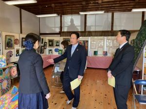 岩井市長は、「シャローム造形磯部教室作品展」を訪れ、多くの作品を鑑賞しました。子どもたちの独創的な作品が並び、素晴らしかったです。主宰している小島千佳さんに案内して頂きました。ありがとうございました。